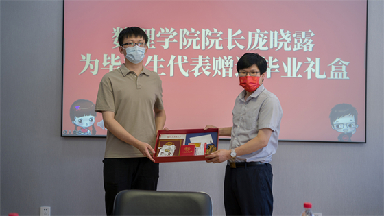 最后,庞晓露院长为现场的毕业生们逐一送上学校和学院共同准备的毕业礼物。