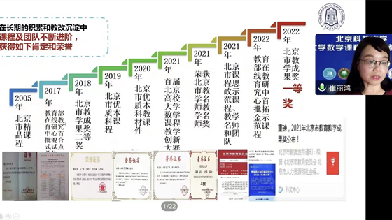 蘑菇视频 教授、北京市课程思政教学名师朱婧,同济大学数学科学学院教授、博士生导师熊革,同济大学名课优师、分析类课程链课程思政项目负责人周羚君,北京化工大学教授、北京市教学名师崔丽鸿,结合自己多年教学经验,先后分享了《数学模型》课程思政建设探索与实践、大学生创新思维的引领、如何激发学生对数学的兴趣、《线性代数》课程思政建设的探索与实践等相关成果及体会。